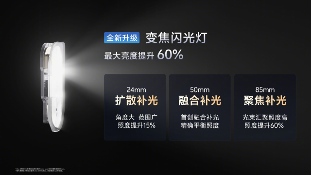 最后,是往往被忽略但至关重要的闪光灯系统。在X200 Ultra开创性的变焦闪光灯基础上,X300 Pro迎来了全面升级,带来了三焦段变焦闪光灯,全面覆盖24mm、50mm和85mm三大经典人像焦段,其中85mm焦段的亮度相比前代提升了60%。并且首创了光斑融合技术,实现了50mm焦段的均匀补光。更值得一提的是,X300标准版也搭载了X200 Ultra同款设计的双焦段变焦闪光灯。这意味着,X300全系都能拍出专业的夜景闪光人像大片。