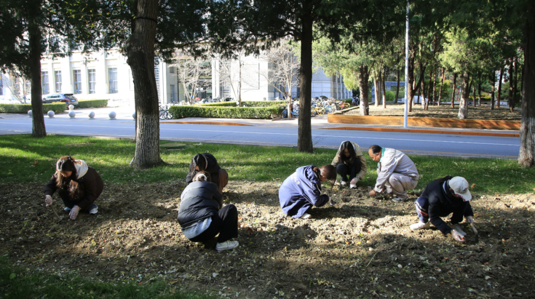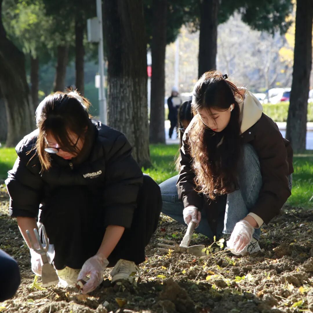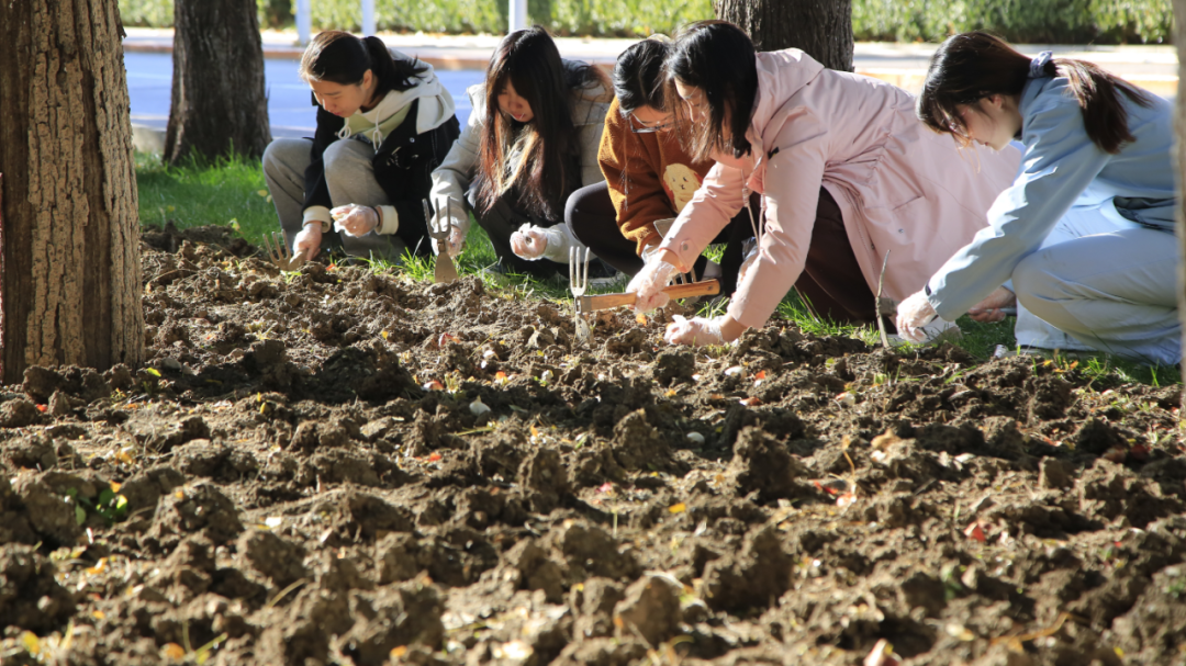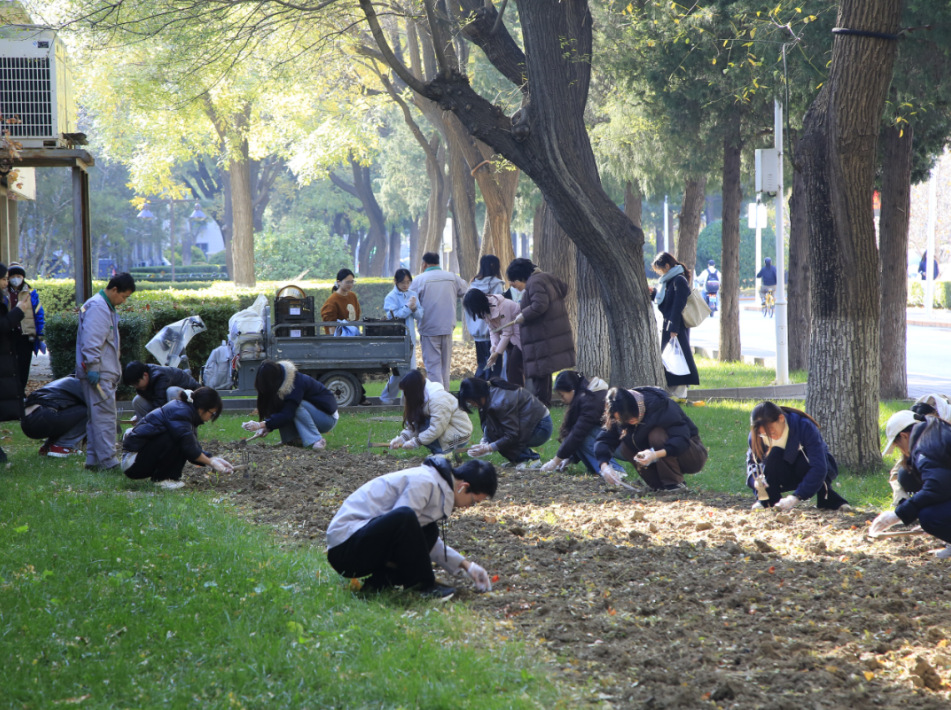 去年秋日的一个上午,寒风清冽,我们在科技楼前集合,随助教来到敬文讲堂旁的草坪,亲手种下今年的春天。