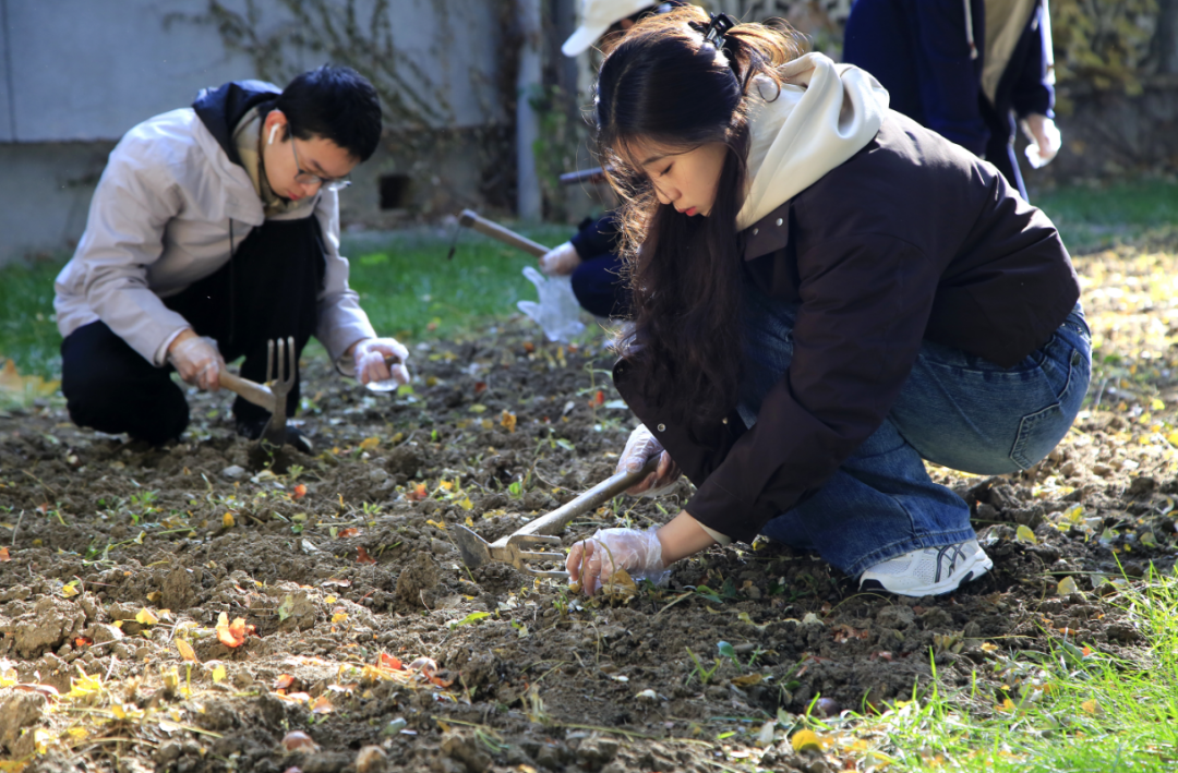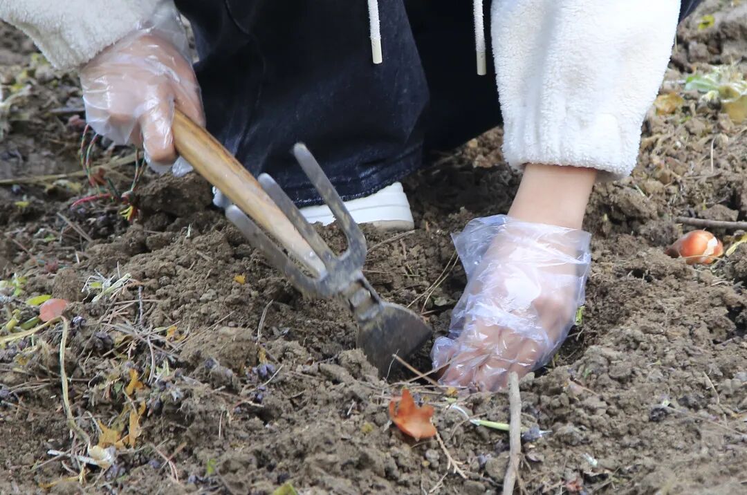 种花老师傅手持饱满的种球,告诉我们秋日栽种,三四月便可花开。我蹲下身学着松土,没几下便手臂发酸,才知劳作需要力气与耐心。摆放种球要芽尖朝上、间距均匀,覆土更要厚薄适中。这让我想起《诗经》中 “播厥百谷,实函斯活”,读懂了千百年来对土地与生命的敬畏。指尖沾满泥土,我真正体会到 “稼穑之艰难”。翻土靠力气,摆放需细心,等待要信心,这些都是课本之外的生活学问。