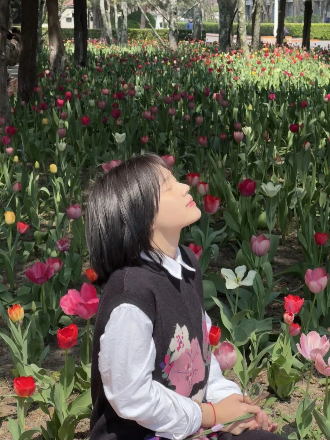 考虑到自己已是研三,我还曾担心花期太晚,来不及亲眼看见便要毕业。前几日路过图书馆,看到大片郁金香竞相绽放,不少同学驻足拍照,我内心满是欣喜与成就感,也真切感受到,自己用小小的劳动为校园美化贡献了一份力量。